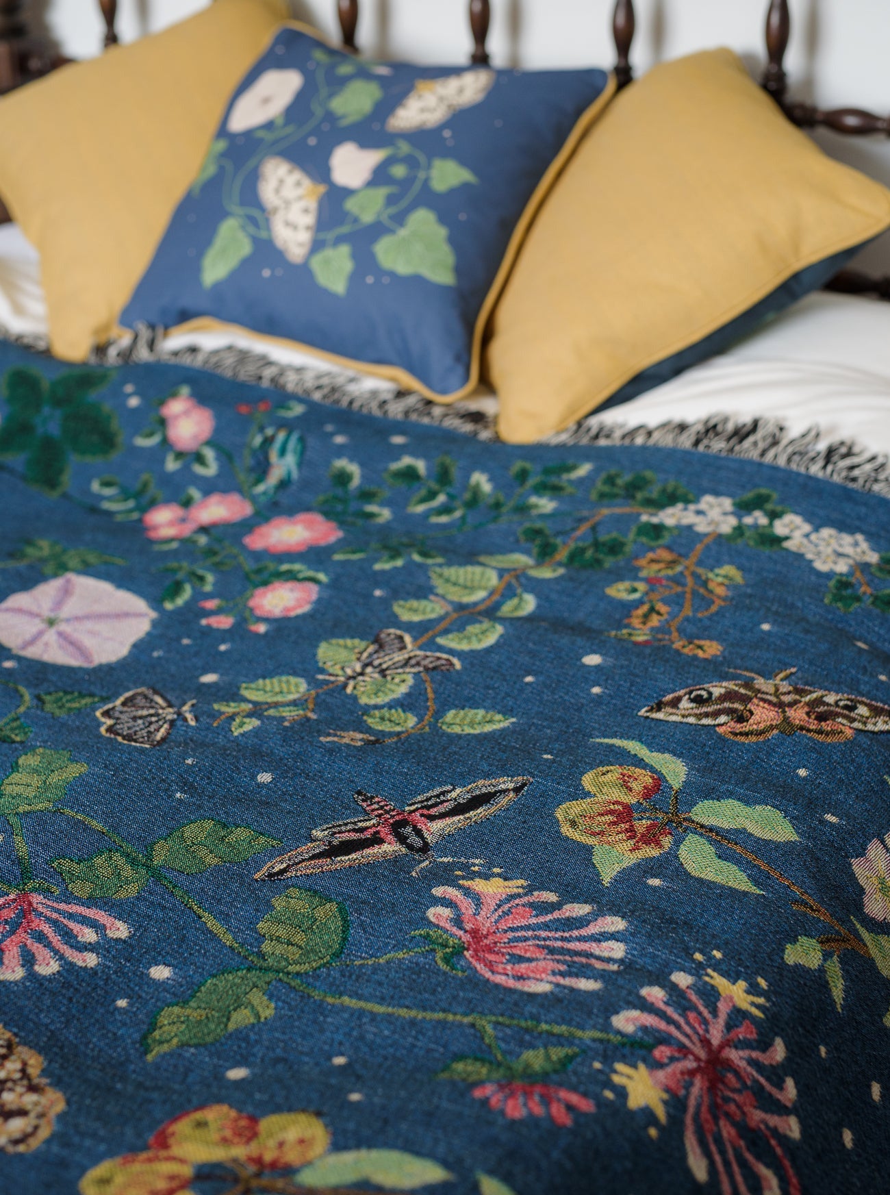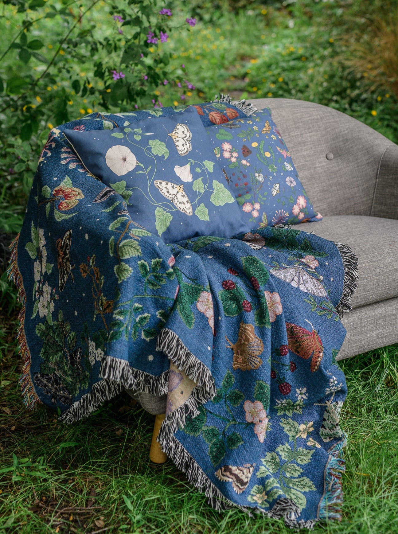 Transform your home into a nature-inspired haven with this Night Garden luxury woven blanket. Celebrating back garden biodiversity, you’ll discover moths for every month of the year, paired with the plants that hungry caterpillars feed upon. With art imitating nature, the woven blanket is filled from ground to tree level, with plants climbing up the edges untethered and coming alive with an abundance of nightlife.