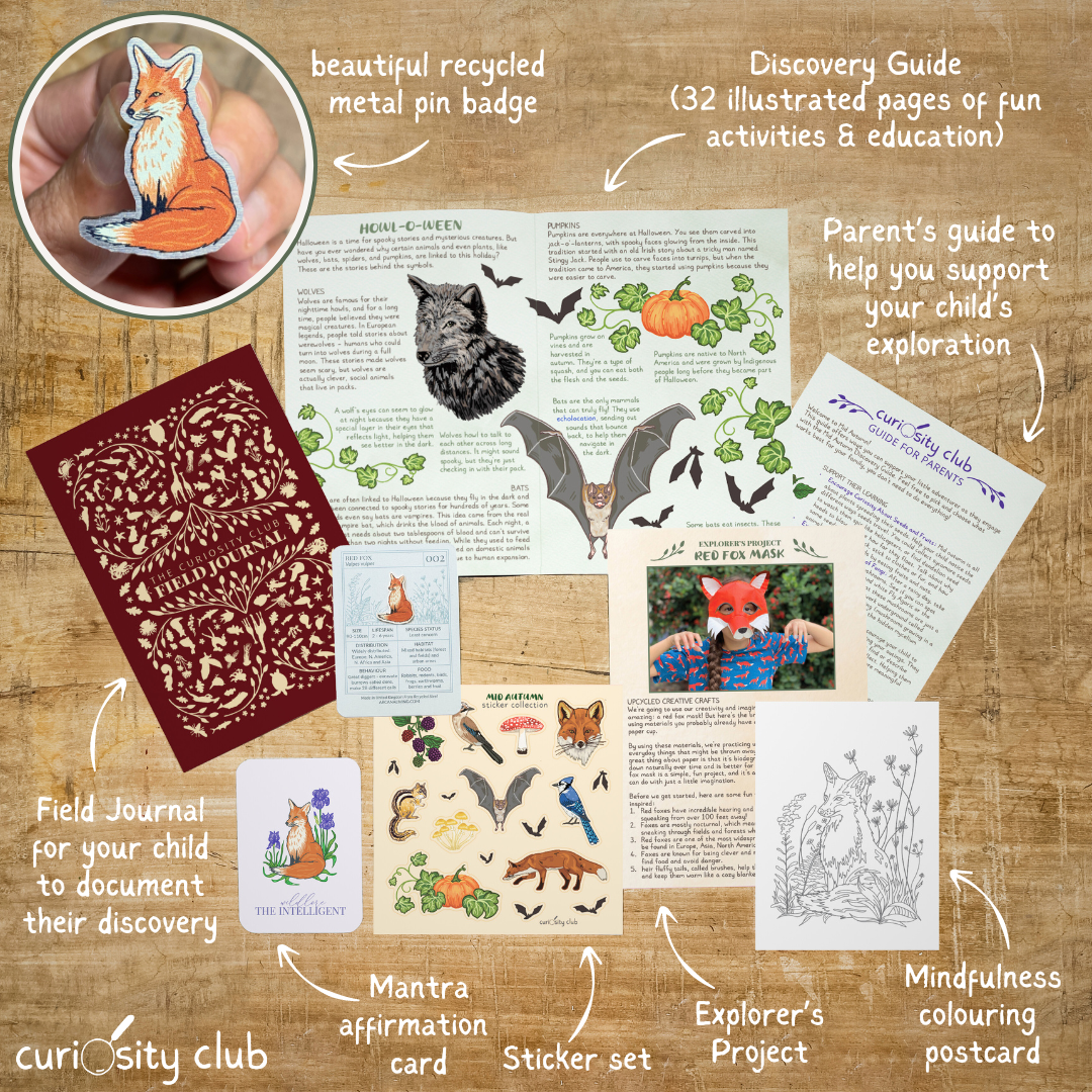 ✨ This edition’s collectible: A beautiful recycled metal pin badge of the Red Fox, currently exclusive to Curiosity Club (please note that due to small parts this is not suitable for children under 36 months)