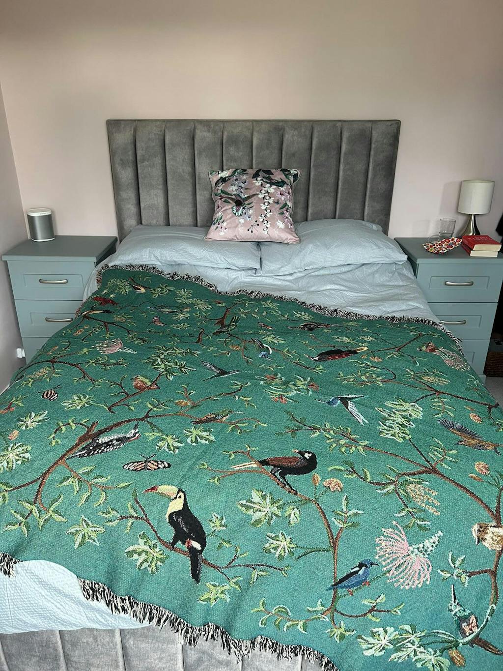 tropical bird teal green woven blanket