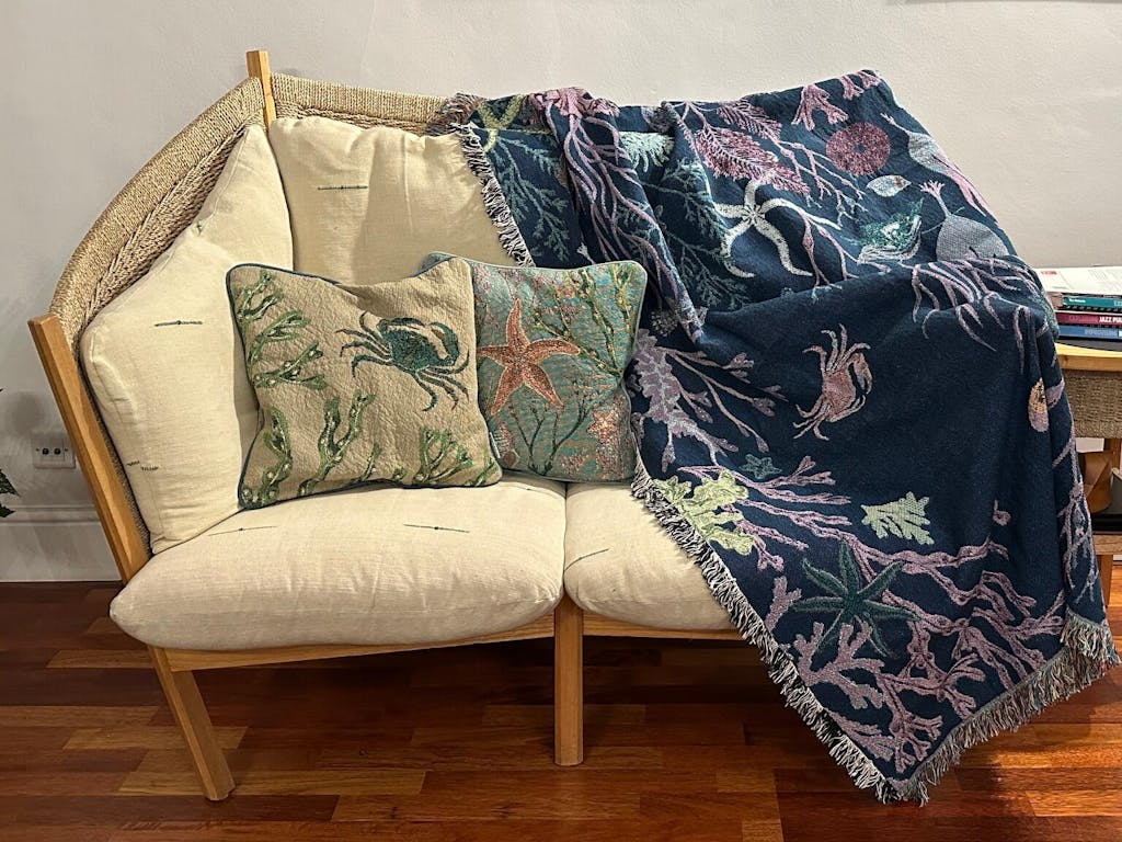I bought the last 2 crab cushions to go with my intertidal sand woven blankets and they make a fabulous set - I am delighted - just want 2 more please! Wonderful quality & lovely colours for my room. Thank you Ria.