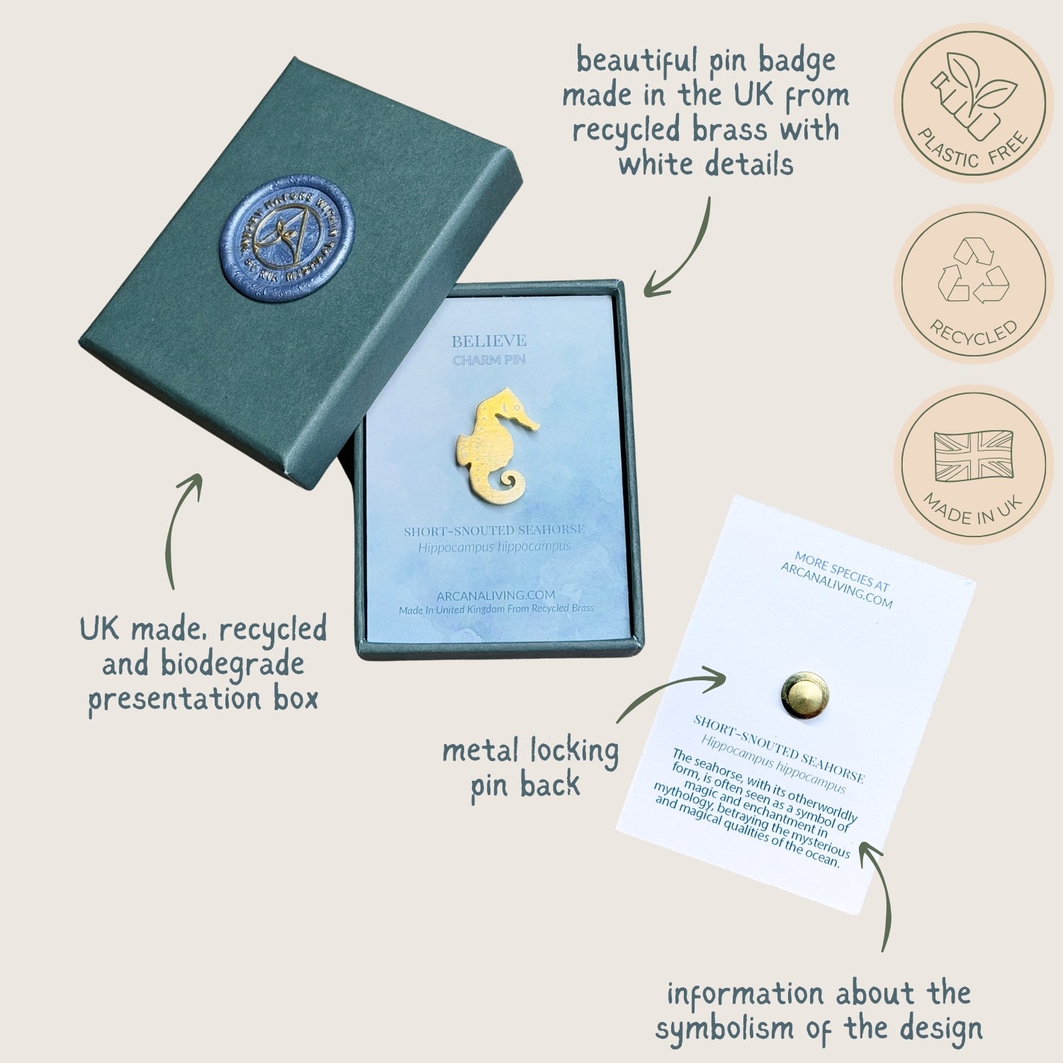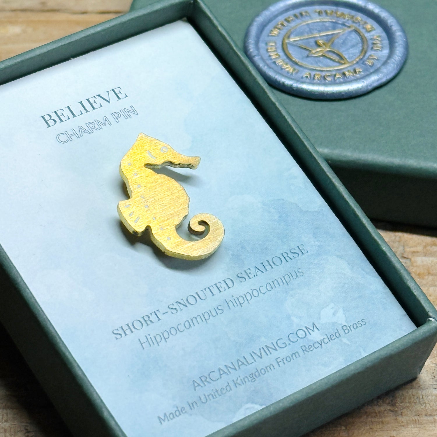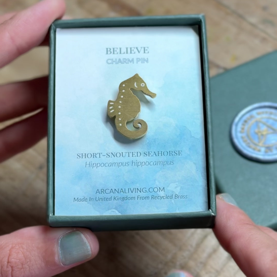 Our 'Believe' Charm Pin features the Short-snouted Seahorse.