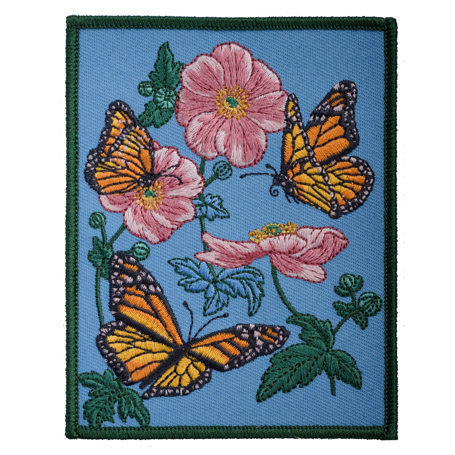 details of Monarch butterfly and Anemone flower Embroidered Patch