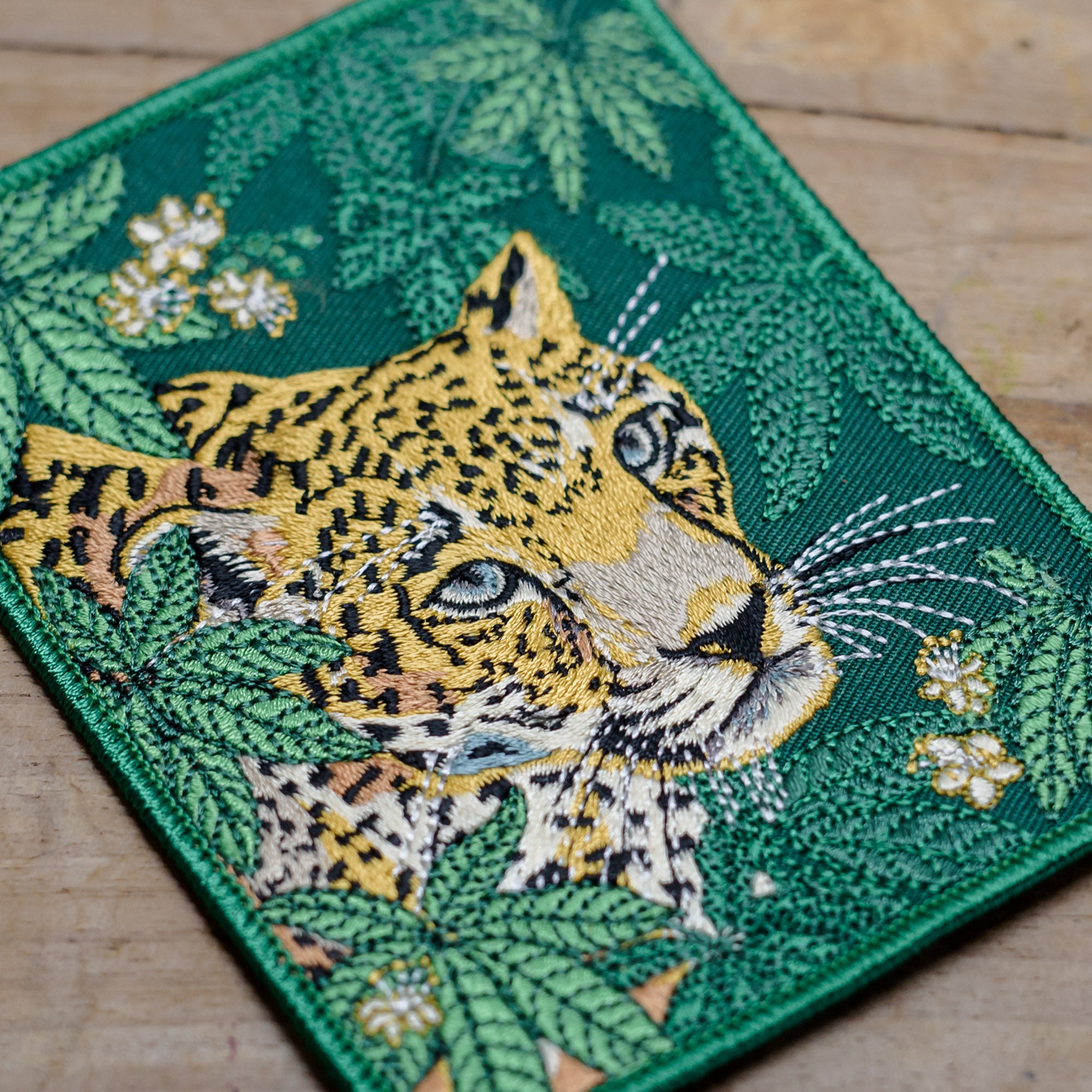 'The Transcendent’ embroidered art patch features the Jaguar and Ceiba.