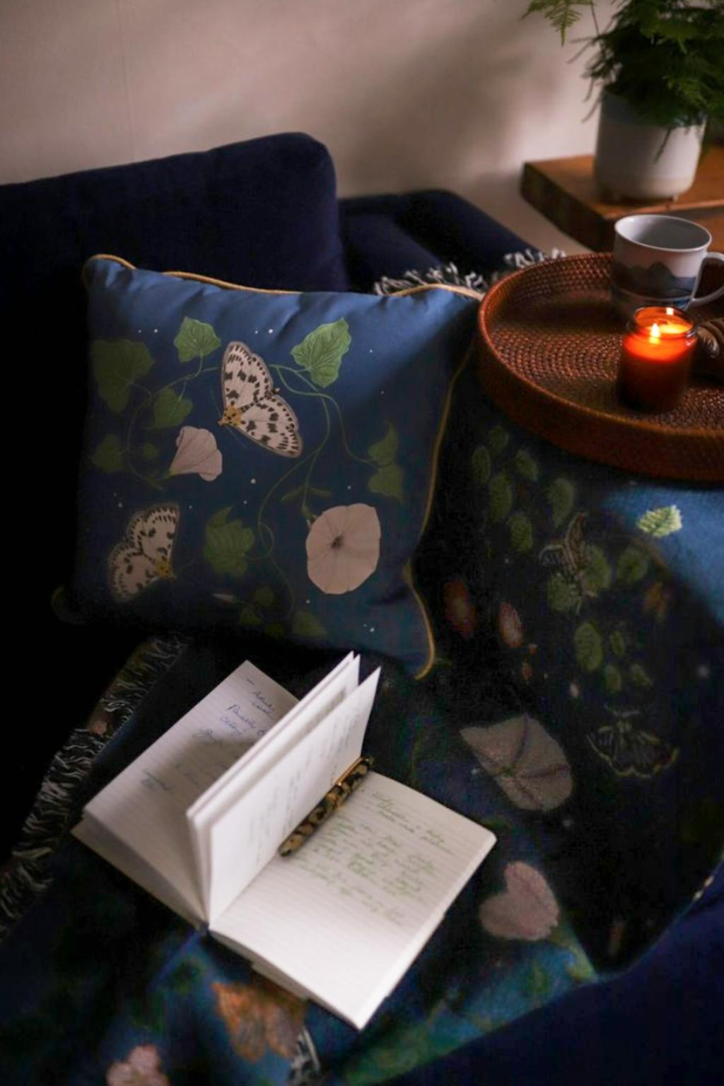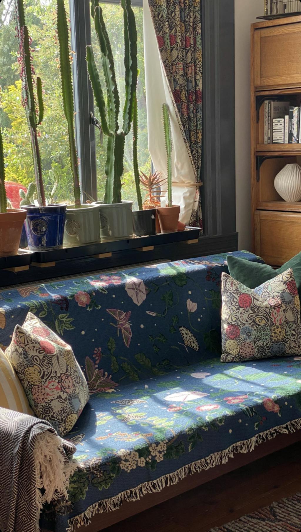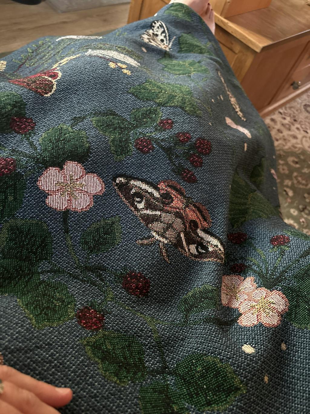 I discovered @fromarcana on instagram and instantly fell in love with Ria’s nature inspired designs. I received this beautiful Night Garden blanket from my best friends for my 40th birthday. The quality of the material, the colours and intricate patterns make it feel really special and it has quickly become a cherished possession. The woven cotton is soft, breathable, and comforting. I currently have my blanket draped over the end of my bed but it’s also perfect for a picnic or cozy evening indoors.